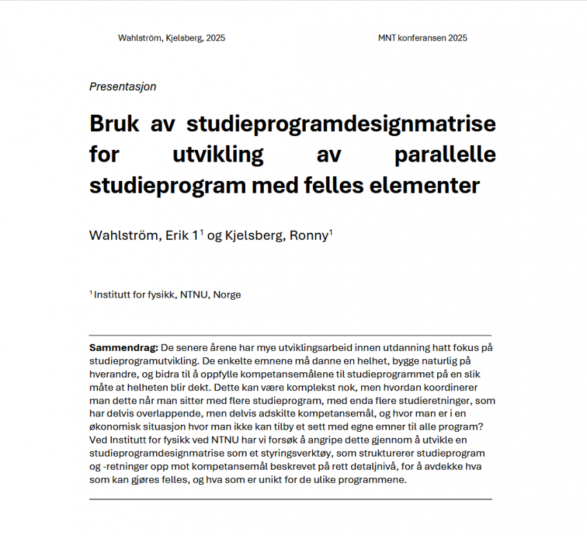 Ja, jeg fortsetter innimellom å skrive litt på jobb også. Denne gangen sammen med instituttlederen, og artikkelen som handler om styring av ulike kompetansemål på tvers av ulike studieprogram, ble presentert på MNT-konferansen 2025.