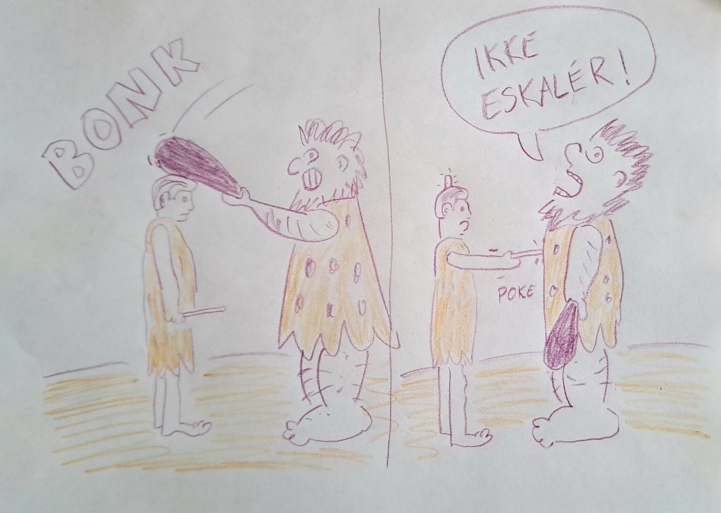 Forsøk på å illustrere artikkelens budskap gjennom det mektige verktøyet “satirisk tegneserie fra steinaldermiljø”.